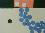 Des tranches de vie racontées de façon simple et humoristique par des petits jetons de couleur évoluant dans un monde de formes géométriques et de dessins esquissés.