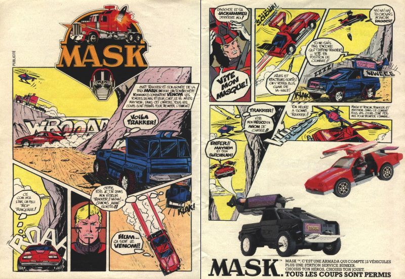 Sur une double page, en 1986, on retrouvait dans le Journal de Mickey une mini histoire mettant en scène quelques héros de MASK, afin de promouvoir les jouets qui sortaient...