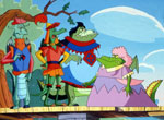 Terry Jones est le créateur des Monty Pythons. Reprendre les légendes Arthuriennes pour en faire ce dessin animé déjanté est tout à fait son genre. Tout est dérision ; du nom du chateau, de la forme de la table jusqu'aux noms et caractères des "chevaliers". Les dessin animé connu un tel succès qu'un jeu vidéo lui fut consacré sous son titre original : Blazing Dragons.