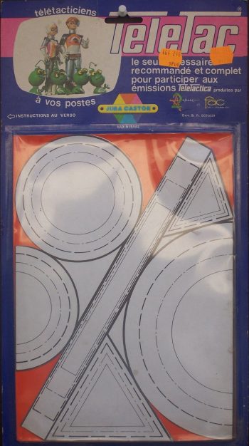 Attention, collector ! Il s'agit là du set qui servait pendant l'émission Télétactica, où l'on pouvait "coller" (haa les joies de l'éléctricité statique !) diverses formes directement sur l'écran de la télévision. Il s'agit du set "Teletac", qui coûtait alors 5 francs à l'époque...