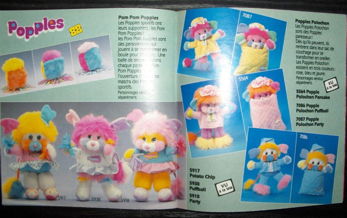 1988. Au programme du catalogue Mattel, les jouets peluches des Popples font leur arrivée. Peluches que vous pouvez mettre en "boules" bien entendu...