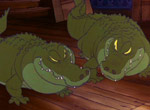 Néron et Brutus, les deux crocodiles, sont d'ailleurs vraiment effrayants, et tranchent avec le style d'un autre alligator célèbre de Disney, celui de Peter Pan, plus comique dans l'esprit et le design.