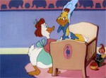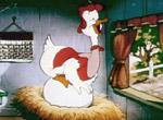 Dans la basse-cour, toutes les canes se promènent suivies par leur ribambelle de canetons. Toutes ? Non, il en reste une à part, qui se lamente devant ce spectacle, elle qui cherche désespérément à pondre son premier oeuf. Elle se décide, résignée, à prendre des vitamines pour arriver à ses fins, mais toute désespérée qu’elle est, c’est tout le flacon qu’elle avale d’un trait. La réaction ne se fait pas attendre, et en un instant, elle se retrouve à couver un œuf énorme !