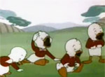Un caneton tout aussi gigantesque en sort, c’est Tartine (Baby Huey en VO) : ce gros volatile jaune dont tout le monde se moque à cause de sa naïveté, celle que personne n’aime à cause de sa gaucherie, de son appétit démesuré, de son poids, mais surtout celle qui est toujours là pour aider ses camarades grâce à sa force hors du commun, qui lui permet, entre autres, de toujours pouvoir déjouer les plans du Renard…