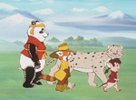 Le panda géant est l'emblême de l'Organisation mondiale de protection de l'envionnement (WWF), sans nul doute du fait de l'affection qu'il provoque, et surtout qu'il s'agit d'une espèce menacée. Vu la vocation écologique de cette série, il n'est donc pas étonnant de retrouver cet animal dans les personnages principaux. Il est accompagné d'un autre panda (en réalité n'ayant aucun rapport avec les ursidés, mais plutôt de la même famille que les ratons laveurs), il s'agit du panda roux (ou petit panda), et d'un rat des bambous, ces trois espèces étant toutes très fiandes de bambou !