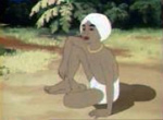 Pour le remercier de lui avoir sauvé la vie, le jeune garçon refusant toute récompense, l'Antilope d'Or lui révèle son véritable nom - Vijaya - et lui indique le lieu où elle réside, et l'invite à l'y rejoindre, si un jour, il a besoin d'aide. Mais le serviteur du mahârâjâ, resté sur les lieux, a aperçu l'antilope juste avant qu'elle ne quitte le garçon. Il tente de faire dire à ce dernier, dont on apprend alors qu'il n'a plus de père, où elle est partie, mais sans succès, puis se sauve sous une pluie de noix de coco que lui jette le peuple singe. Rapportant ce fait à son maître, celui-ci l'envoie chercher le garçon avec l'aide de deux soldats.