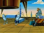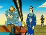 Lire le synopsis completArrivé sur la Planète des capitaines dont le professeur Seleznev fait ainsi la première grande étape de l'expédition, et atterrissant près du musée, le trio de voyageurs est reçu amicalement par le docteur Verkov (celui-ci semblant bien être le personnage apparu sur la Lune au regard de Gromozeka, Seleznev en faisant la remarque à Zeleny). A la vue des deux statues dès plus imposantes représentant Kim et Buran / Kim et Yuri, les deux capitaines, l'un affublé sur son épaule d'un drôle d'oiseau, et ce dans le grand style du réalisme socialiste soviétique, Alice se souvient que c'est à l'école qu'elle a pris connaissance de l'existence de ces deux hommes et de leurs découvertes. Mais, après que le professeur Seleznev a demandé à compulser les fameux journaux des deux capitaines, le docteur Verkov se fait plus distant, jusqu'à prétendre ne pas avoir les dits documents, et ne pas savoir où se trouvent actuellement les deux capitaines, ce qui pour un spécialiste de ces deux grandes personnalités de l'espace est assez surprenant. Quittant la planète, le capitaine Zeleny, le professeur Seleznev et Alice aperçoivent aussitôt le petit vaisseau du docteur Verkov faisant de même alors que quelques instants plus tôt, celui-ci prétendait ne pas voyager. Tout cela paraît bien étrange au petit équipage du Pégase, et ce n'est pas pour déplaire à Alice qui apprécie les mystères au contraire du capitaine Zeleny qui n'en est pas friand.