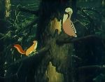 A noter encore que Vera Chaplina avait co-écrit le scéanrio des Voyageurs de la forêt avec Georgy Skrebitsky (1903-1964), autre célèbre écrivain animalier et naturaliste avec qui elle collabora à plusieurs reprises dont, une nouvelle fois pour l'animation, en 1954, avec Dans la forêt profonde / V Lesnoj Chasche réalisé par Alexander Ivanov et Lev Pozdneyev dans des tons narratifs et esthétiques relativement similaires à ceux des Voyageurs de la forêt. Ce court-métrage diffusé également sur Canal J en 1996, et sorti un an plus tôt en VHS chez Citel, encore au travers de la traduction / adaptation américaine, fut lui aussi édité, comme Les Voyageurs de la forêt, sous la forme d'une nouvelle en 1954, en un autre recueil semblable au précédent évoqué il y a quelques lignes, portant d'ailleurs le même titre Filmy-Skazki (Les Contes du Cinéma) pour les éditions moscovites Iskusstvo, ouvrage où l'on pouvait lire également le récit de Neobyknovennyj Match (Un match extraordinaire) cité plus haut, La Petite Fleur Ecarlate ou encore L'Antilope d'Or.