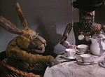 Alice (ou Quelque chose d’Alice, si l’on souhaite traduire littéralement le titre original) constitue son premier long-métrage et se propose de réinterpréter le conte de Lewis Carroll suivant ses thématiques récurrentes, à commencer par les objets, principaux acteurs du film. Toujours usés, ces derniers tentent de surpasser leur fonction par l’animation pour finalement être renvoyés à leur nature la plus triviale et leur donner ainsi un caractère dérangeant : le Lapin Blanc passe son temps à ré-ingurgiter la sciure qui s’échappe de son corps à cause de l’ouverture sur son torse qui lui permet de sortir et rentrer sa montre à gousset, le Lièvre de Mars est un jouet mécanique hors d’âge à remonter régulièrement, le Chapelier Fou une marionnette à tringle buvant du thé (qui bien sûr dégouline dans son corps de bois creux) et la Reine de Cœur demeure une figure de carte à jouer physiquement plate.