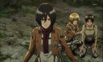 De même, lors d'un chapitre mémorable du manga ainsi qu'un épisode de la série animée, un riche marchand bouche une entrée avec sa charrue qui devrait permettre aux gens de s'enfuir, estimant que sa vie vaut mieux que la leur. Écœurée par l'égoïsme de cet homme, Mikasa arrivera à le convaincre (de façon musclée !) de laisser d'abord partir ses concitoyens par cette sortie et seulement après il empruntera ce chemin.