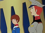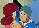 Le film peut être décomposé en deux parties qui dans la série n’ont pas du tout la même durée. Ainsi la première reprend les épisodes 16 à 25 alors que la seconde compile les épisodes 26 à 30 (+ quelques scènes de l’épisode 31). Cette deuxième partie est assez respectueuse de la série même si quelques scènes sont mélangées et d’autres coupées. Néanmoins, tout l’aspect dramatique des deux intrigues développées dans ces épisodes se retrouve ici, ce qui n’est malheureusement pas le cas dans la première partie. Dans celle-ci, on retrouve surtout les épisodes 16, 17, 19 et 20 mais les épisodes 21 et 24 ont été très compactés, les épisodes 23 et 25 réduits à une scène ou deux et les épisodes 18 et 22 totalement supprimés. Là encore les scènes sont mélangées et tous les combats ont été montés de telle sorte qu’on a l’impression qu’il n’en reste qu’un seul. Mais ce qui est véritablement gênant, c’est que toutes les dissensions qui se sont formées au sein du White Base au milieu de la série ont été zappées ou réduites au minimum : la désertion d’Amuro est vite montrée et sa réintégration dans l’équipage se fait encore plus rapidement et sans l’intervention de Ryu (un membre de l’équipage). L’importance de ce dernier est d’ailleurs considérablement diminuée dans le film alors qu’il joue un rôle de premier plan à l’origine. Enfin, la situation de crise qui voyait le remplacement du capitaine Bright Noa - suite à sévère coup de fatigue - par Mirai (un membre féminin très anxieux) disparaît complètement. Pire, la mort tragique de deux personnages perd toute son intensité, leur disparation étant traitée de manière beaucoup trop rapide et quasi consécutive (alors que dans la série deux épisodes séparent ces tragédies).