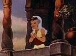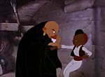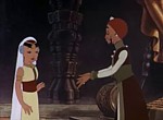 Lire le synopsis completJafar arrive donc à Bagdad où le calife Osman se résout à lancer les festivités malgré l’absence d’autres prétendants. Durant ces festivités, la princesse chante devant le peuple accompagné à la mandoline par un petit garçon prénommé Amin. Ce dernier, qui possède de nombreux talents (il sait par exemple charmer les serpents en jouant du fifre) et qui est très généreux avec les pauvres (notamment avec l’énigmatique Fatima) a grandi aux côtés de la princesse qu’il aime bien. Après sa prestation face au peuple, la princesse apprend que Jafar entend l’épouser, néanmoins son père - guidé par ses trois conseillers - ne compte accepter le mariage que lorsque sa fille aimera Jafar. Ce dernier, sachant pertinemment que ça n’arrivera jamais, demande son aide à Burk qui lui parle d’un anneau magique qui rendra la princesse instantanément amoureuse. Mais Amin a entendu leur conversation et envoie sa pie Calina voler l’anneau. Burk a alors une autre idée : enlever la princesse. Amin part donc prévenir Zeila mais se fait intercepter par le sorcier qui l’emmène dans un château lugubre, loin de Bagdad. Là, il change la couleur de sa peau pour le rendre méconnaissable et lui reprend la bague magique. Puis il transforme Calina en trophée de chasse alors qu’elle tente d’aider son jeune maître. Heureusement, Tonko, Zirko et Zizibé, les 3 conseillers du roi, alertés par la mère d’Amin de la disparition de celui-ci, partent à sa recherche. Mais hélas en chemin, ils tombent dans le piège de Burke qui les transforme en bébé en leur faisant boire de l’eau de la fontaine de jouvence...