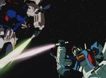 Le seul bémol c’est que la première partie été fortement compressée, si bien que seules les OAV 5 et 6 ont été à peu près conservées, les OAV 1, 2 et 7 ont quant à elles été réduites à 5 minutes, l’OAV 3 à moins d’une minute et l’OAV 4 a totalement disparu ! Du coup, certains membres de l’équipage du vaisseau Albion n’apparaissent que dans une scène ou deux, et si on n’a pas regardé les OAV avant le film, on ne sait pas qui ils sont (le lieutenant Bernard Monsha par exemple). Pire, l’introduction du vétéran South Burning ayant été zappée, on ne sait pas ce qu’il fait là ni pourquoi il est blessé. C'est d'autant plus dommage que dans le même temps les scènes des OAV 6 et 7 où l'on voit le personnage secondaire de Kelley Layzner, ex lieutenant de Zeon, ont été conservées alors qu'elles étaient loin d'être essentielles à l'histoire. Les OAV 8 à 13 ont été en revanche bien plus soignées. Hormis l’épisode 8, réduit à moins de 2 minutes, et l’épisode 11, réduit à environ 7 minutes, les épisodes n’ont été pas été trop coupés puisqu’une quinzaine de minutes de chaque a été conservée. Le personnage de Lucette Audevie (!), ingénieure et amie de Nina, a entièrement disparu sans que cela nuise au montage. La dernière OAV a été quasiment entièrement conservée, à l’exception de son épilogue qui restait donc inédit au moment de la sortie en vidéo. La fin du film est du coup différente et beaucoup moins joyeuse !