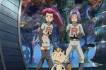 Le film fait encore une fois la part belle à divers caméos de personnages issus des précédents films (ou de la série, comme la mère de Sacha et les familles de Pierre et d'Aurore) mais également des jeux vidéos, en l'occurrence Louka (héros masculin des versions Diamant, Perle et Platine) et Brice (celui des versions Rubis, Saphir et Émeraude). On note d'ailleurs que l'équivalent du Monde Inversé s'appelle Monde Distorsion dans les jeux vidéos (le nom est différent également en japonais).