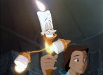 Cette suite de la Belle et le Bête tient presque plus du midquel car la cœur de son histoire se situe en plein milieu du film d’origine (après le moment où Belle est sauvée des loups par la Bête et avant le bal), son introduction et sa conclusion se déroulent néanmoins après les événements du premier film. Ce long métrage sorti directement en vidéo permet donc de revenir plus longuement sur le moment où la Belle et la Bête commencent à se rapprocher l’un de l’autre. Il permet également de faire connaissance avec trois personnages inédits, dont celui de Maestro Forte, qui est plutôt réussi notamment dans son interprétation, effectuée en VO par Tim Curry, célèbre acteur du Rocky Horror Picture Show également connu pour son rôle de clown terrifiant dans le téléfilm Ça.