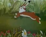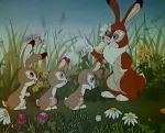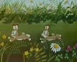 En 1982, si l'âge d'or du studio Soyuzmultfilm relève alors du passé selon certaines perspectives, les productions réalisées après cette période, quoique semblant moins imposantes à quelques égards, offre à admirer, toujours en une intense et riche production, une incontestable virtuosité créatrice et ce avec moult expériences tout autant dans les domaines de la narration et des idées que dans ceux du graphisme et de l'animation, même pour des œuvres semblant mineures. C'est ainsi le cas du Lapin Jouet qui, sous ses dehors légers d'une histoire très simple ornée de dessins au style enfantin (proche d'illustrations de la littérature jeunesse considérée comme populaire), conserve encore un peu du monde animalier touchant au naturalisme dans l'animation soviétique des années 50/60. Aussi, si les lapins sont représentés avec de grands yeux telle une descendance de Panpan, l'ami du jeune faon dans Bambi de Disney, la nature qui les entoure offre à voir des décors raffinés où, feuilles et pétales fourmillent à l'image en de doux paysages. A propos de Disney, un peu de son univers est d'ailleurs « présent » dans une autre œuvre de l'écrivain et scénariste Michael Lipskerov (1939-) à qui l'on doit ce Lapin Jouet, à savoir dans la série de court métrage Samij Malenkij Gnom au travers de quelques nains issus du Blanche-Neige disneyien apparaissant dans un album d'images du petit gnome, héros de cette série aux jolis et tendres volumes.