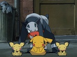 La souris électrique est cette fois-ci accompagnée par deux Pichu, une espèce de Pokémon dont les Pikachu sont en fait l'évolution, bien qu'aucun Pichu n'apparaissait dans les premiers jeux vidéos ! C'est aussi la première apparition de cette espèce au sein de l'adaptation animée, comme c'est le cas pour d'autres Pokémon issus de la deuxième génération des jeux.