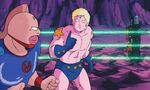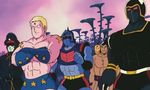 Lire le synopsis completA leur arrivée sur Metro, notre groupe de combattants est repéré par des soldats qui s’empressent de prévenir Octopus. Celui-ci envoie donc ses hommes au combat. Le premier d’entre eux, Harigorus, les attend après un pont. Rikishiman se bat contre lui mais le combat est rude et les deux guerriers tombent du pont. Rikishiman parvient à se rattraper mais voyant que Kinnikuman veut l’aider, il se laisse tomber dans le vide pour ne pas le retarder. Le prochain combattant est le ninja Ukon (dont Kinnikuman confond le nom avec "unko" qui signifie "caca" en japonais !), aidé de ses soldats. Ramenman et Brocken Jr. se chargent d'eux pendant que leurs compagnons continuent leur chemin. Plus loin, le groupe manque de se faire écrabouiller par une boule en fer géante qui leur fonce dessus ! Elle a été lancée par AmeRug (un joueur de football américain !) et ses guerriers, et cette fois ce sont Robin Mask et Warsman qui se lancent dans la bataille. Warsman parvient à rejoindre Kinnikuman et Terryman mais pas Robin Mask qui a fini au fond d’un volcan ! Warsman se charge des derniers soldats d’Octopus pendant que Kinnikuman et Terryman partent affronter ce dernier. Ils parviennent finalement jusqu’à Mari mais Octopus les empêche de la délivrer. Il désigne alors un ring dont les cordes sont électrifiées comme lieu de combat pour Kinnikuman et Terryman qui affronteront Octopus et son acolyte Tigerian.