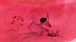 On retrouve malgré tout un univers graphique assez familier de l'auteur (l'apparence de l'humain à la fin rappelle toutefois La Planète Sauvage), grand adepte du contraste provoqué par l'aspect mignon de ses personnages et la dureté de l'univers où ils sont mis en scène. La palette de couleurs, jouant de l'opposition (mais aussi du mélange) entre des tons clairs et rougeâtres (renvoyant au sang du titre), offre un résultat particulièrement saisissant. L'animation numérique de Birdboy a par ailleurs laissé place à une réalisation beaucoup plus traditionnelle.