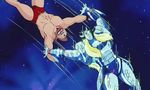 Sur le ring, Kinnikuman se fait laminer, d'autant qu'Akuma Shogun est capable d'utiliser les techniques des Chôjin dont il a absorbé l'énergie ! Malgré le soutien de de ses parents et de Harabote Muscle (qui se déguisent en bunny girls pour l'encourager !), Kinnikuman est expulsé du ring et tombe dans le métro. Là, il rencontre les sous-fifres d'Akuma Shogun dont il se débarrasse assez facilement, ce qui le rebooste pour aller affronter son ennemi. Mais ce dernier use d'une ruse diabolique, il envoie un rayon lumineux à notre héros qui perd la vue !