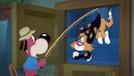 La production va s’avérer être pour l’équipe un véritable casse-tête, le principal défi étant de proposer des séquences avec de multiples variations tout en faisant en sorte que la continuité narrative soit fluide. Associé au réalisateur James Bowman, Hollingsworth élabore les gags et les sévices subis par les personnages avant de les soumettre à Brooker qui demandera à pousser un peu plus la violence des situations. L’animation est assurée par Boulder Media, le studio en charge de la série Le Monde Incroyable de Gumball. Au total, c’est près de 200 séquences agencées au fil des actions du spectateur et des multiples sessions de jeu qui seront conçues, avec un parcours complet comprenant 6 tableaux différents à accumuler, pour un total de 74 minutes d’animation. En plus de pasticher le style élastique des cartoons de l’Âge d’Or hollywoodien, Chapardeur ! présente une image granuleuse semblable à celle d’un film sur pellicule Technicolor des années 1940, parcourue de taches et de micro-rayures. La musique de Christopher Willis, interprétée par un orchestre de 40 musiciens, va également dans ce sens. Collant au plus près de l’action et des attitudes des personnages, la bande-son jazzy et emplie de références est digne des compositions de Scott Bradley pour Tom et Jerry ; Willis remportera d’ailleurs l’Emmy Award de la meilleure musique pour un programme d’animation dans le cadre de la première édition du Children’s and Family Emmy Awards.