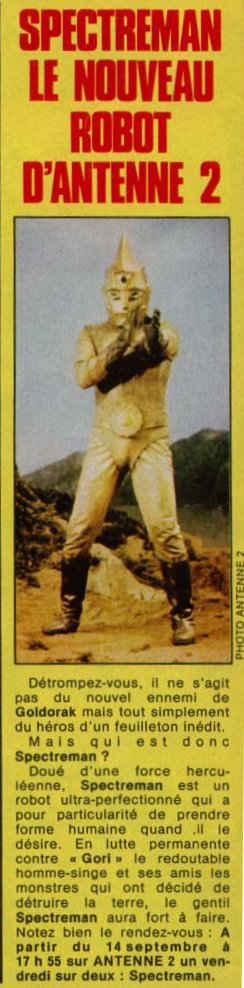 Pour sa vraie première diffusion française, Télé Junior proposait un article sur la série ainsi qu'un concours pour gagner le 45T du générique Spectreman. C'était dans le numéro 38 d'Août 1982 !<br>