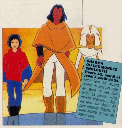 Un petit encart paru dans le Journal de Mickey numéro 1734 de septembre 1985, pour l'arrivée des Mondes Engloutis dans Récré A2.