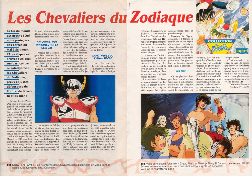 Un article sur la série paru dans le magazine de jeux vidéos Player One d'Octobre 1990 (le numéro 2)