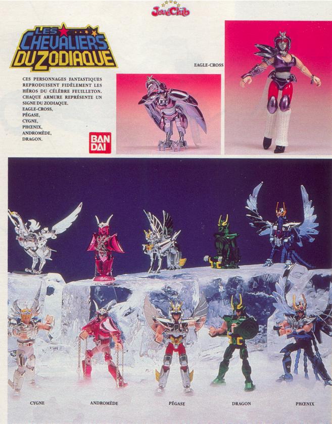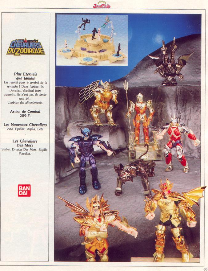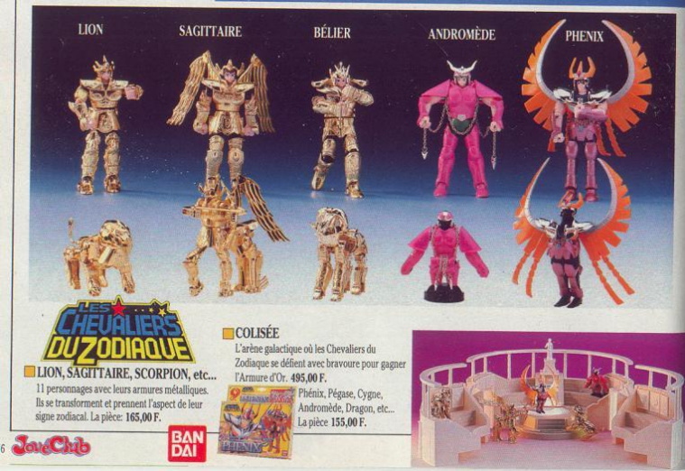 Voici 3 publicités issues du catalogue JouéClub 1988 pour les figurines des Chevaliers du Zodiaque, ainsi que des arènes de combat <i>(merci à French Kiki)</i>.