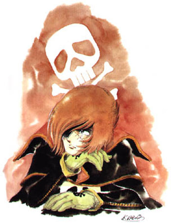 Illustration d'introduction de Jérôme Alquié issue de Capitaine Albator - Mémoires de l'Arcadia et illustration de fermeture de Kazuo Komatsubara, immense character designer ayant porté au plus haut durant une décennie les oeuvres de Leiji Matsumoto.